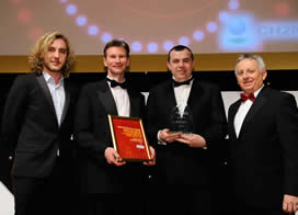 Image from right to left: Ken Titterton, UK HSE Manager at CH2M sponsors; Francis McCann, Director F P McCann and Chairman CPSA; Stuart Crisp, Business Development Director CPSA; event host comedian Seann Walsh